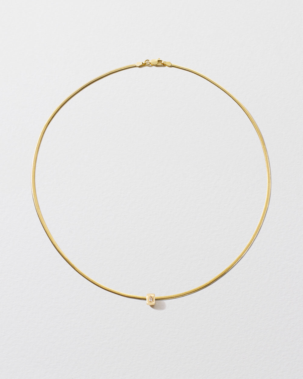 Curvy and swervy, this 14k yellow gold chain is adorned with a dainty pendant bead, punctuated with a precious pear-shaped diamond.