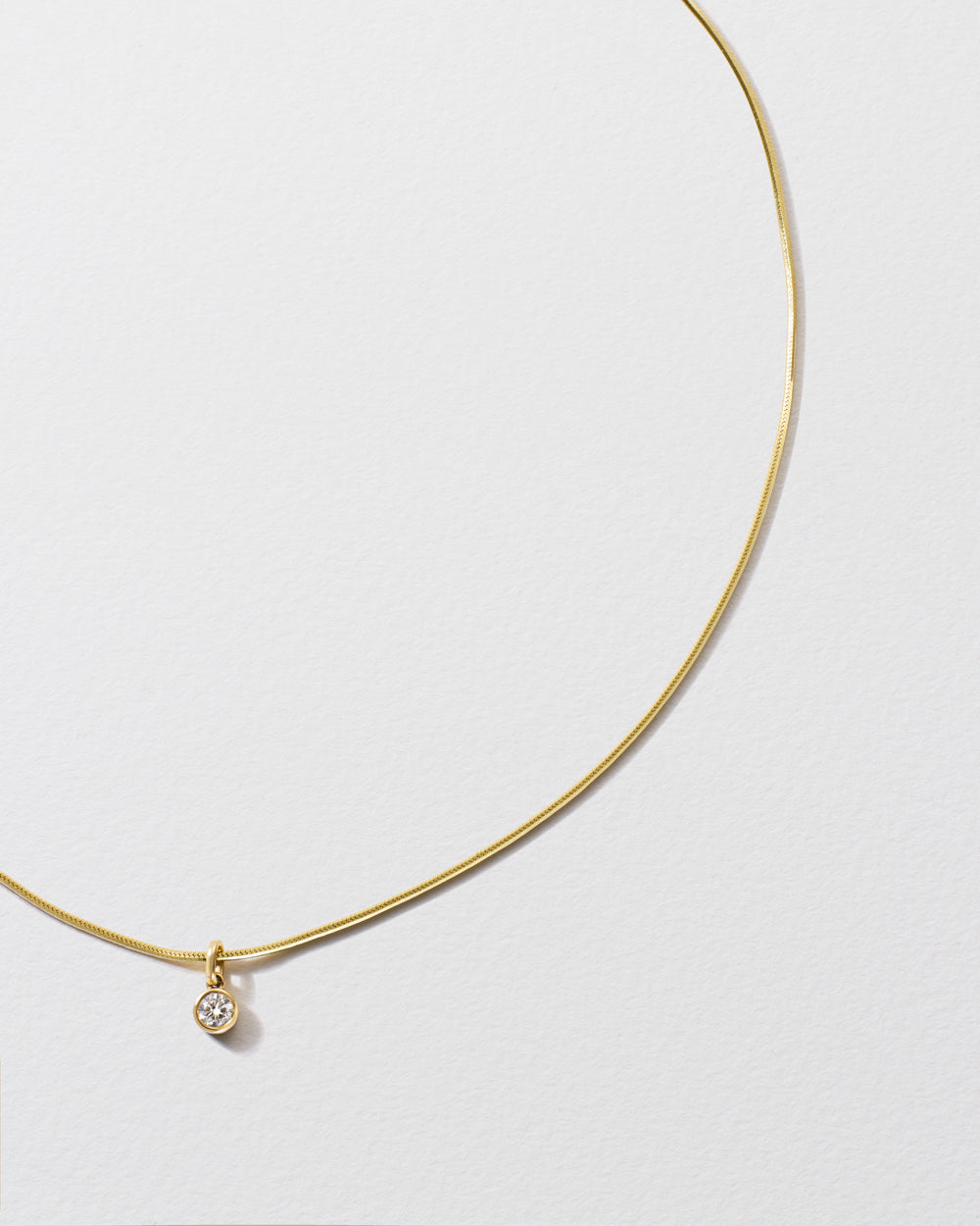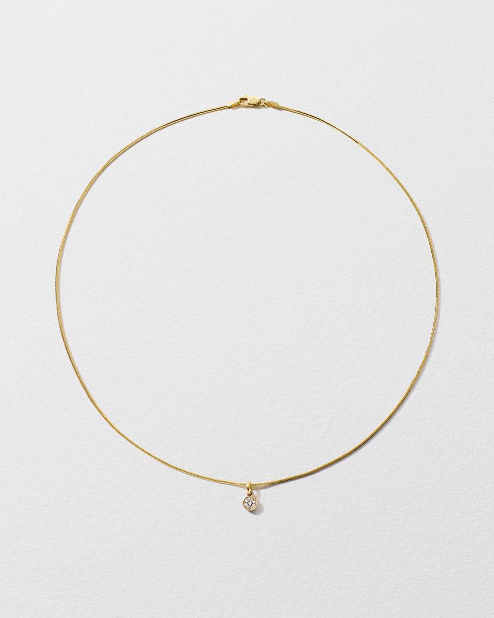 Curvy and swervy, this 14k yellow gold chain is adorned with a dangly drop pendant, punctuated with a precious round diamond.