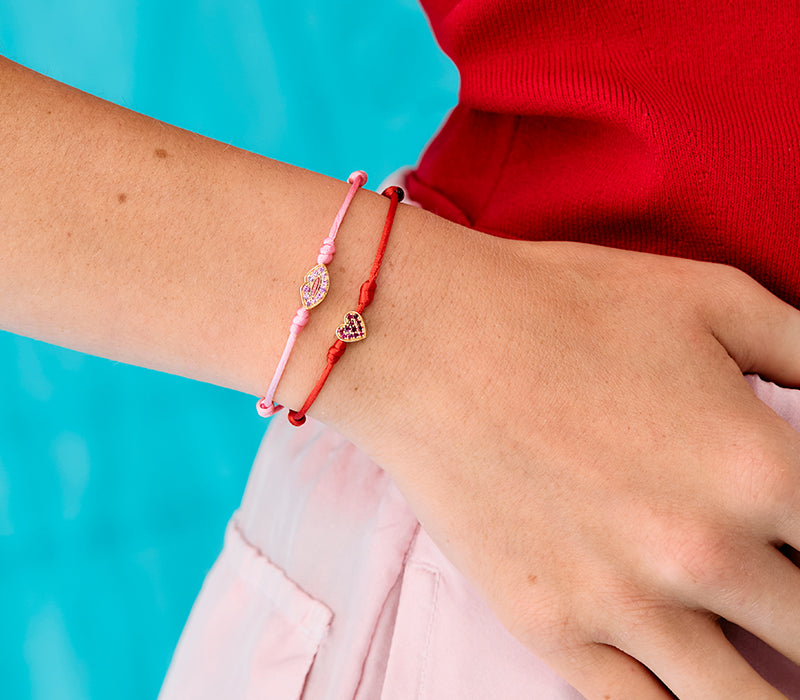 A 'thing' on a string; this lightweight, stackable bracelet style features a gold charm, set with yellow sapphires.